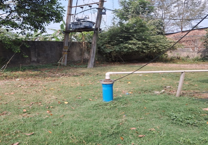 Our existing bore well started picking up sand in mid 2022, leading to emergency situations when we had to buy water for drinking and cooking. On a CRS grant after three failed attempts to locate a new source of water, the contractor was able to get a successful bore well. In mid June 23 we installed a 2 hp submersible pump in the new bore.